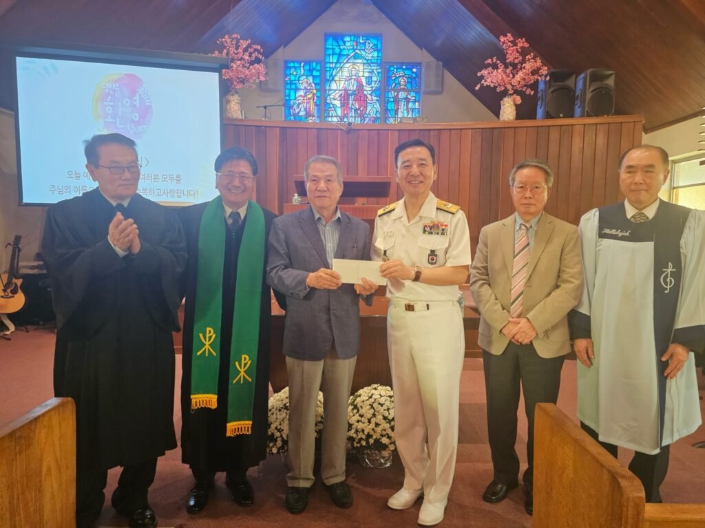 21희망재단 명예이사장(변종덕설립자) 은 10월20일 뉴저지 펠리사이드교회(이창성목사) 에서 개최한 손원일 선교재단 미주본부 창립 감사예배에 참석해 “대한 민국 발전은 육해공군의 헌신과 교회 목회자들의 덕이다” 라는 축사와 함께 손원일 선교재단에 선교헌금$1,000 을 전달했다
